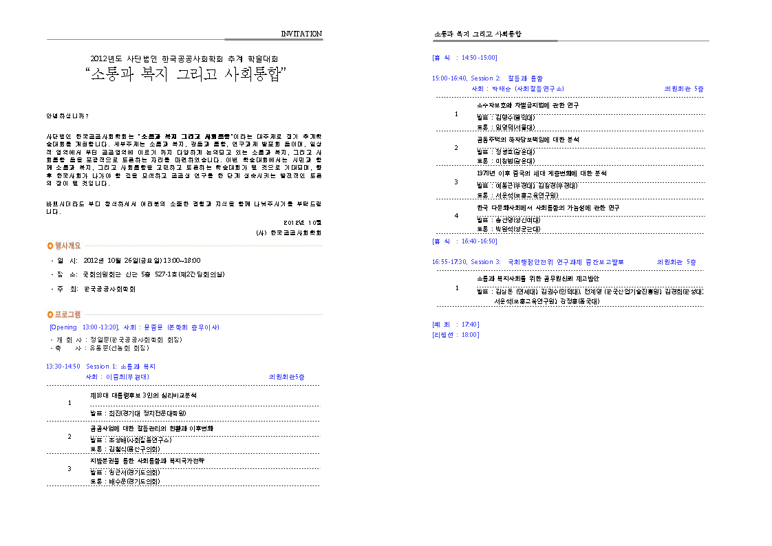 2012년도 한국공공사회학회 추계학술대회 프로그램