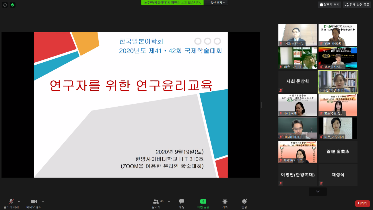 2020년도 제 41회, 42회 학술대회- 제 1발표장