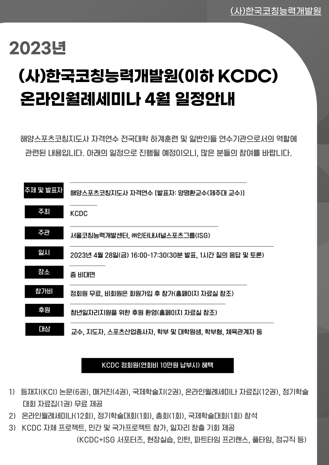 2023년 KCDC 온라인월례세미나 4월 안내