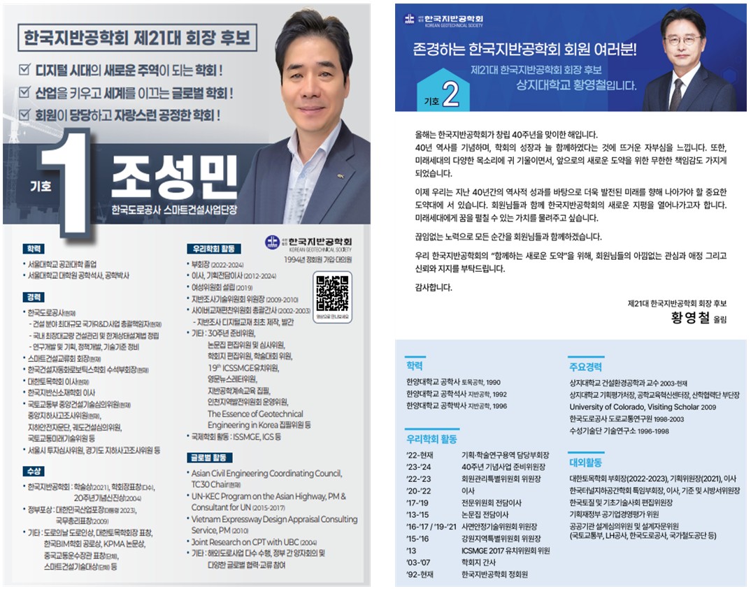(사)한국지반공학회 제21대 회장 후보자 공지