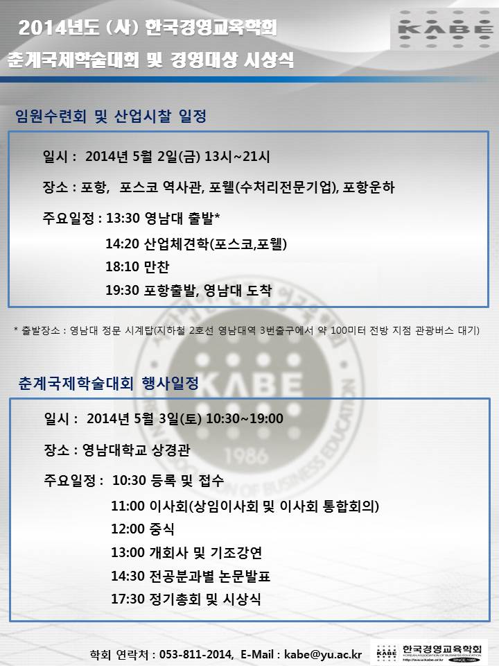 2014년도 춘계국제학술대회 및 경영대상 시상식 일정 안내