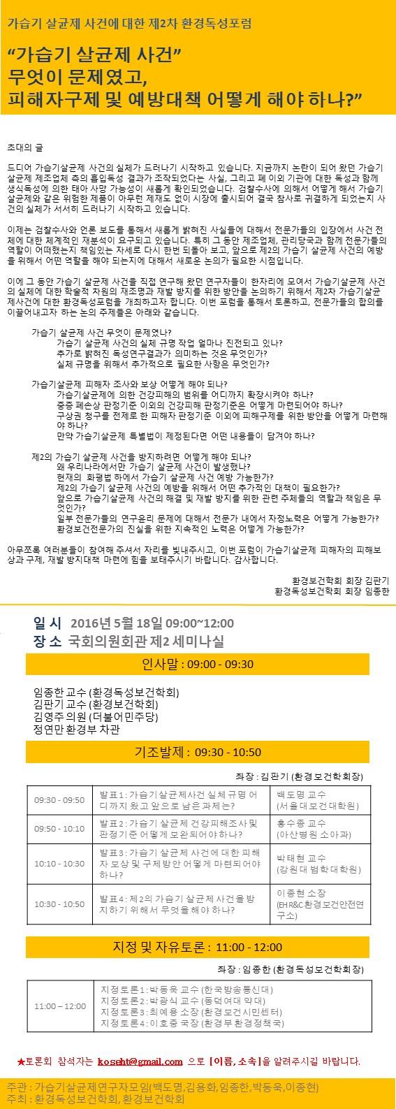 <긴급토론회>가습기 살균제 사건에 대한 환경독성포럼