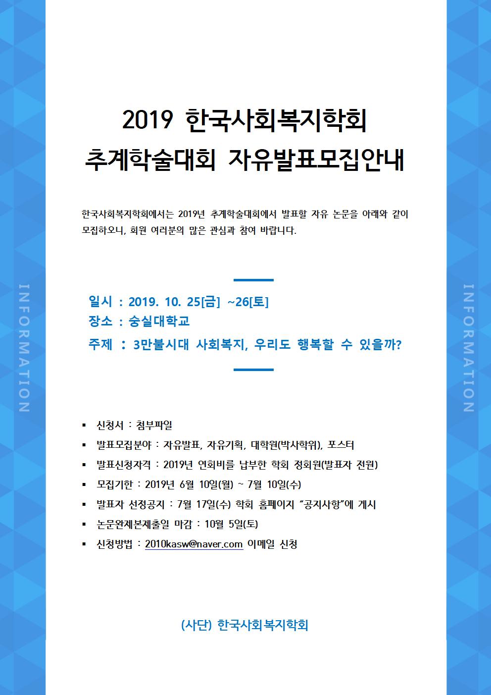 2019 한국사회복지학회 추계학술대회 자유발표모집안내