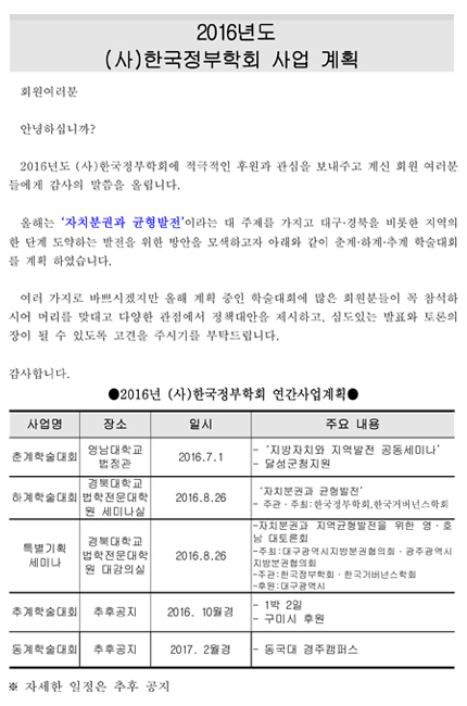 2016년 (사)한국정부학회 춘계학술세미나 안내