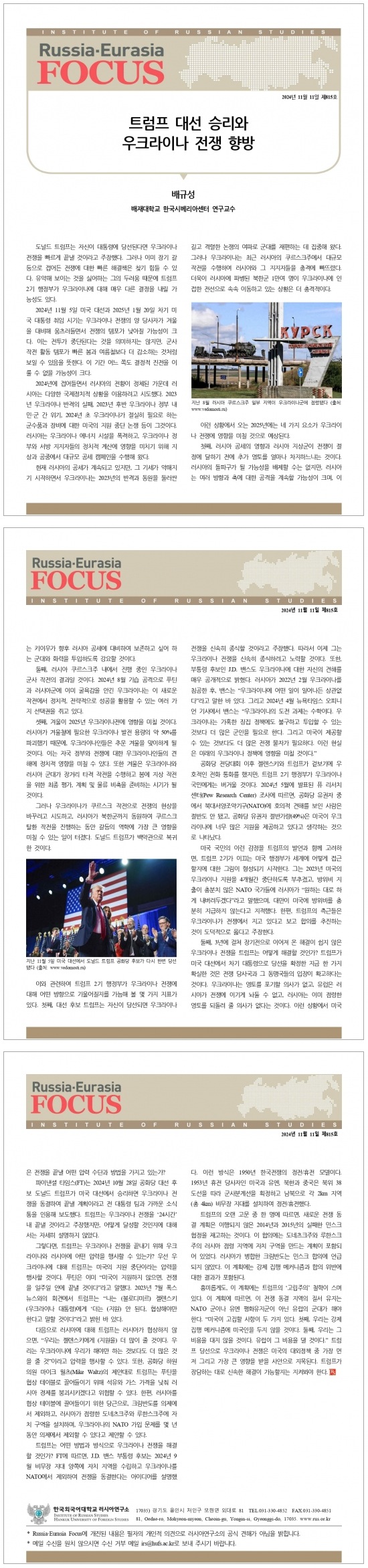 제815호 트럼프 대선 승리와 우크라이나 전쟁 향방