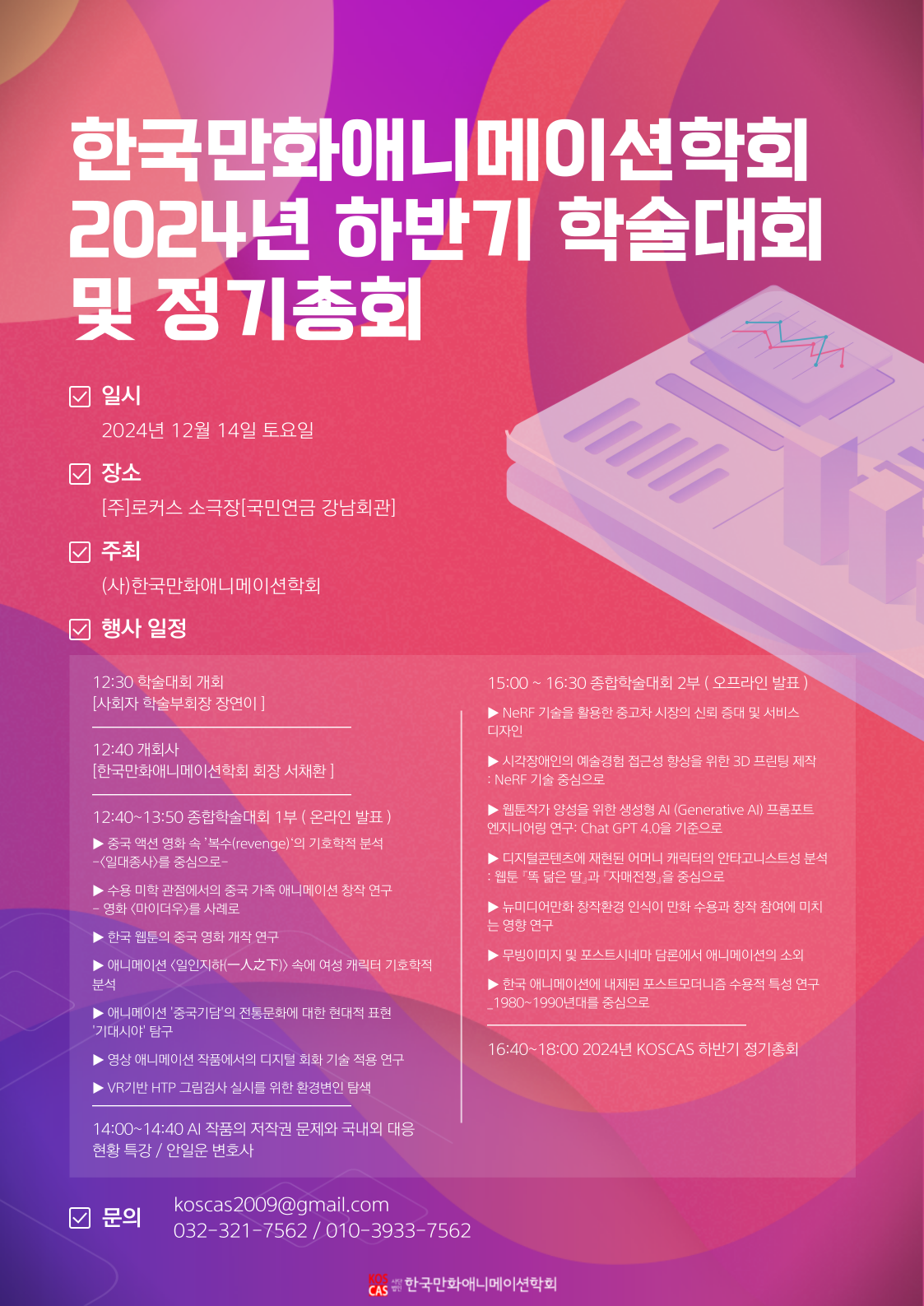 [KOSCAS] 2024년 한국만화애니메이션학회 하반기 학술대회 및 정기총회 공고
