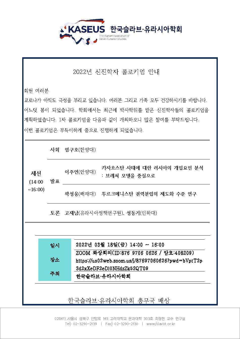 신진학자 콜로키엄 안내 (2022.03.18)