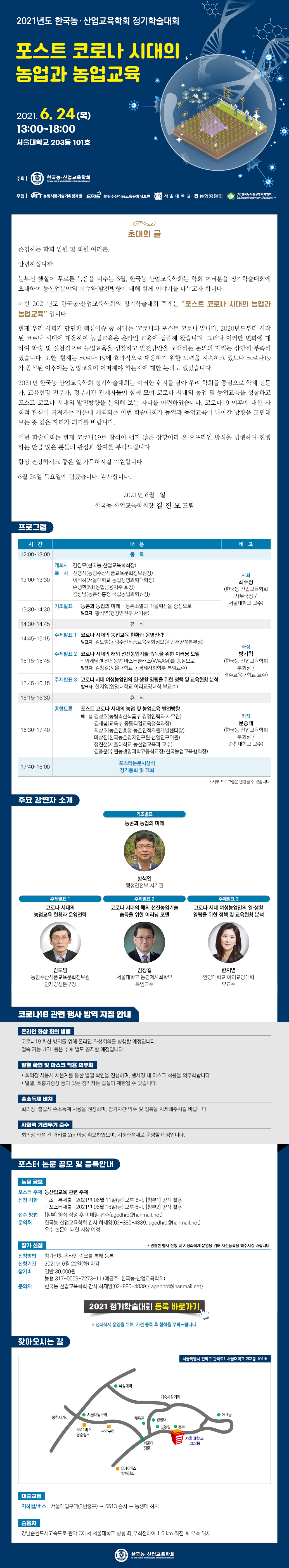 저희 학회의 유관기관인 한국농산업교육학회는 오는 6월 24일(화) 13:00-18:00에 서울대학교 203동 101호에서