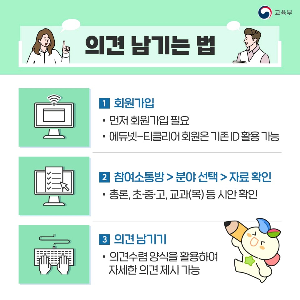 개방형 소통 채널(educhannel.edunet.net)에 작성해 주시는 의견은 교육과정 개발에 효과적으로 반영될 수 있다고 합니다.