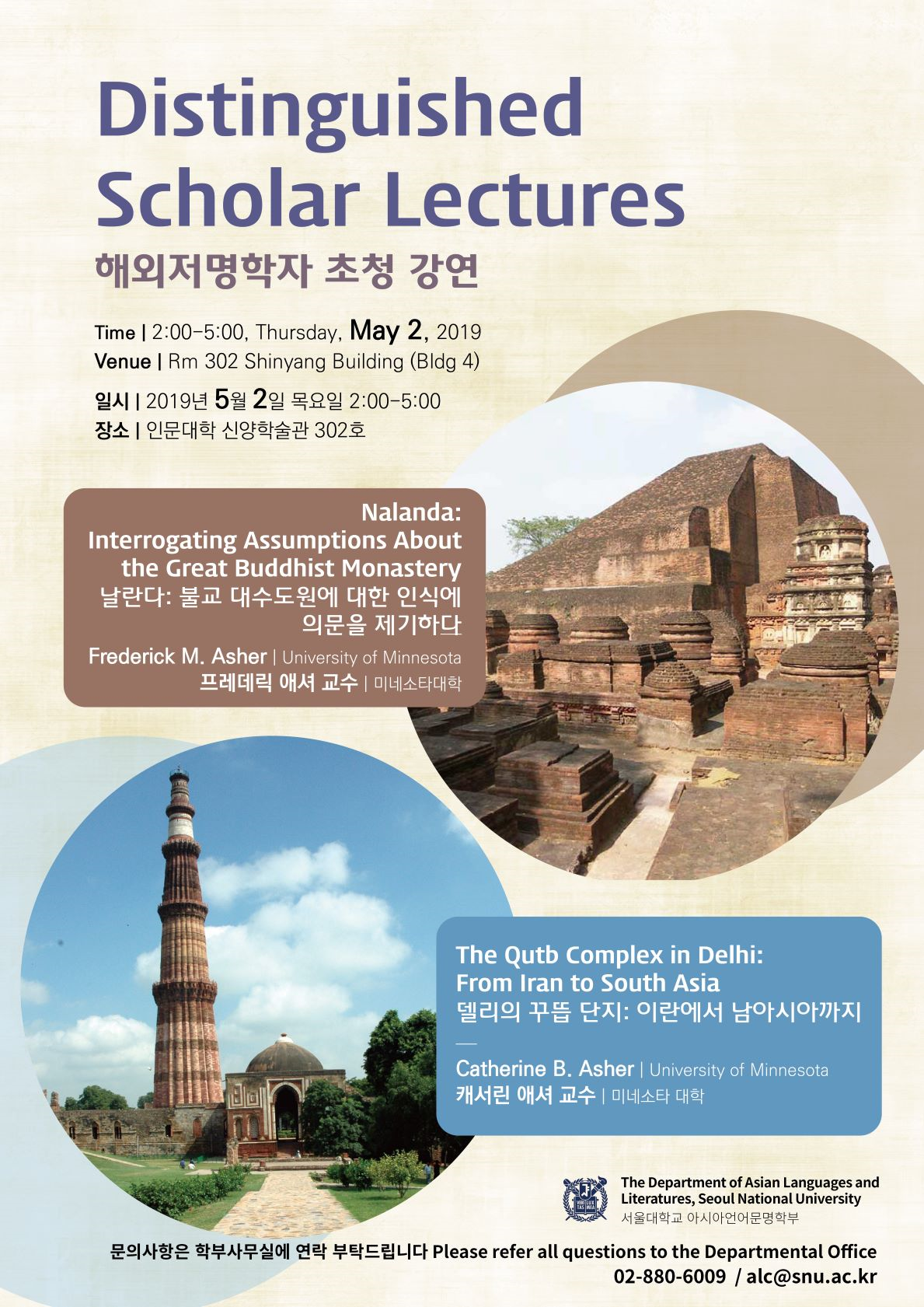 서울대학교 아시아언어문명학부 인도 전공에서 2019년 저명학자 특강에 대해 안내드립니다.
