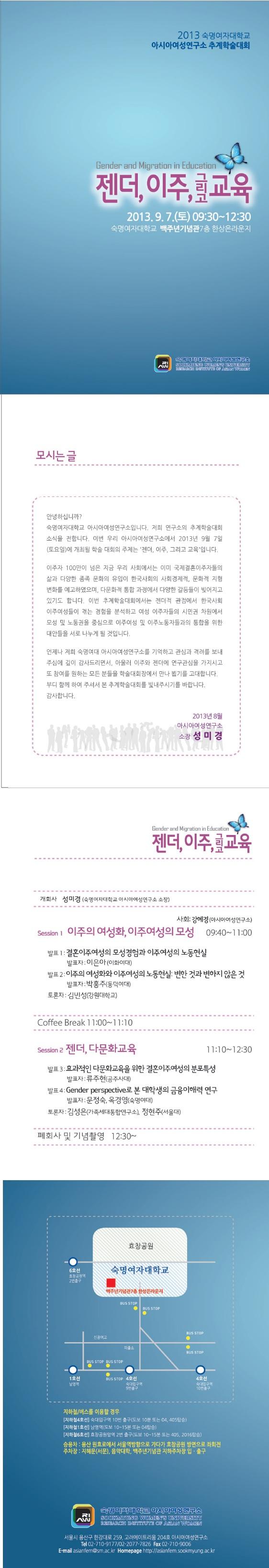 2013년 9월 6~7일 숙명여대 아시아여성연구소 국제 및 추계학술대회