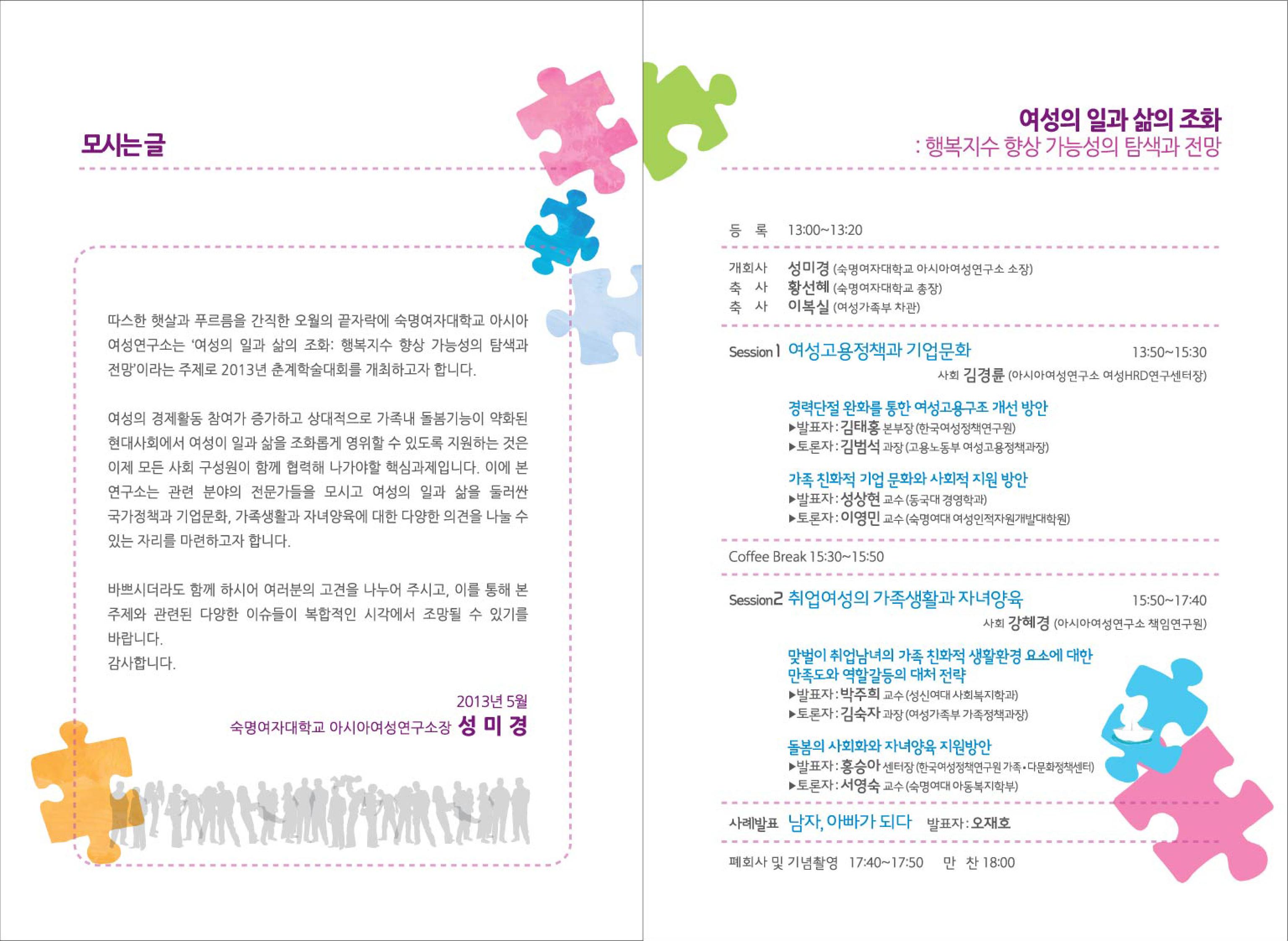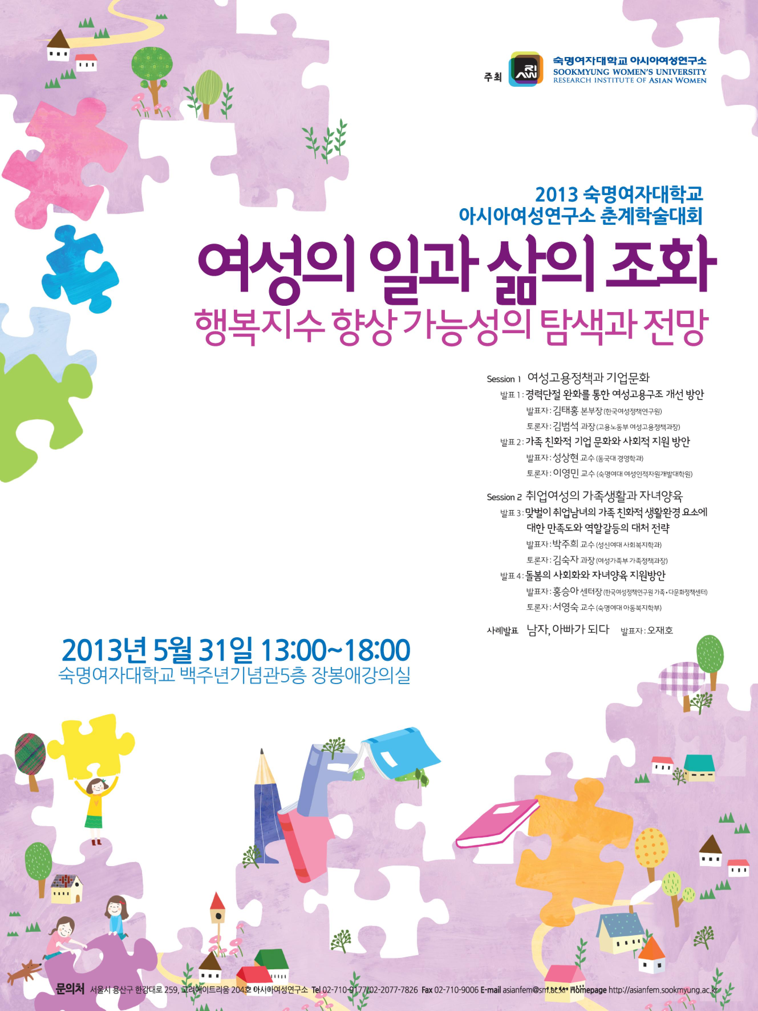 2013 춘계학술대회 <여성의 일과 삶의 조화: 행복지수 향상 가능성의 탐색과 전망>