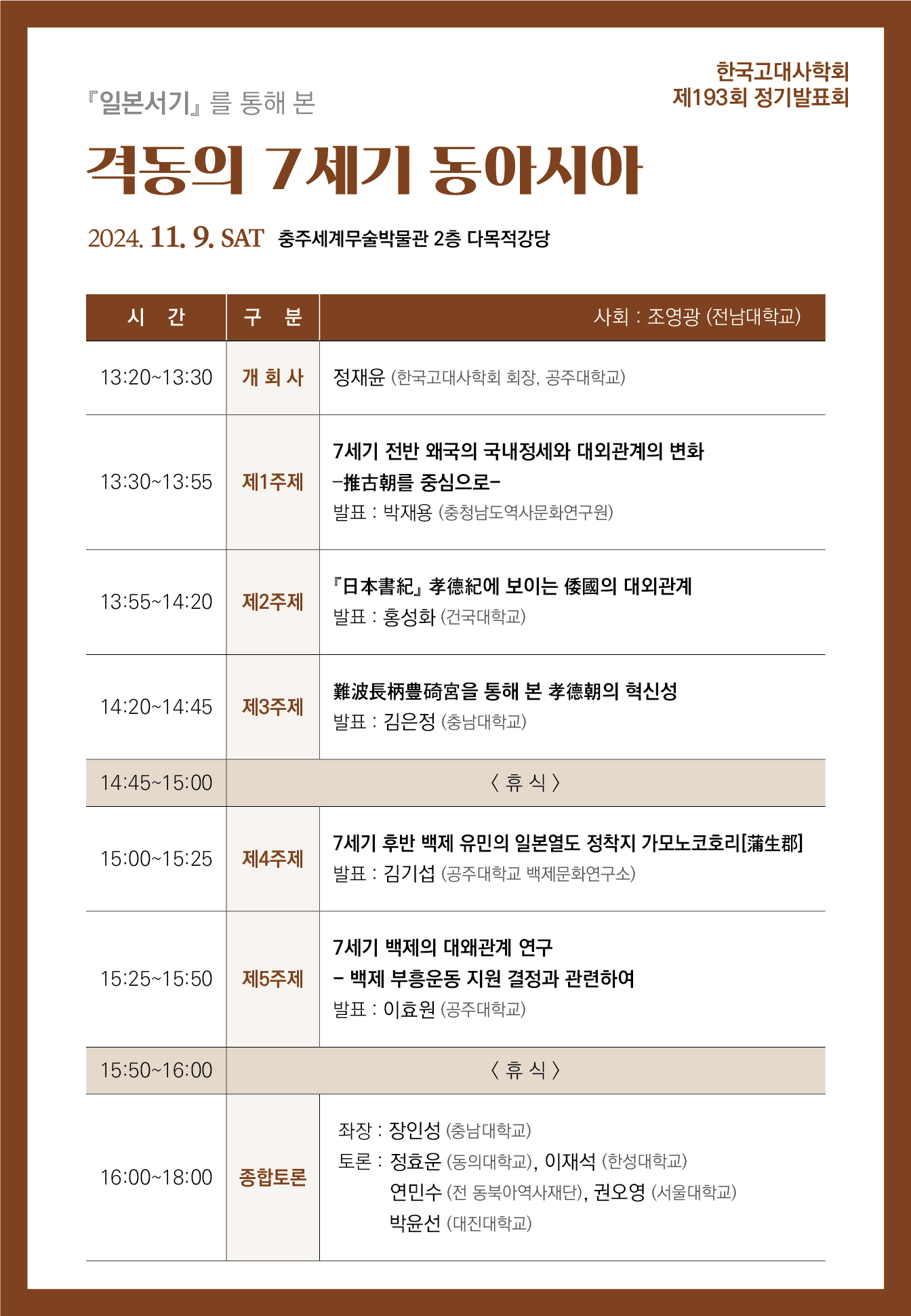 [공지] 한국고대사학회 제192회 정기발표회 "『일본서기』를 통해 본 격동의 7세기 동아시아"