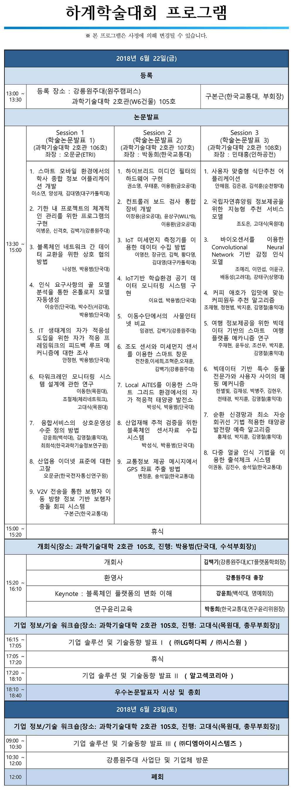 2018 (사)ICT플랫폼학회 하계 학술대회 프로그램 안내