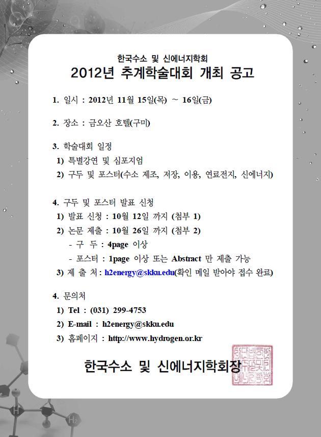 [수소학회] 2012년 추계학술대회 발표신청서 접수중