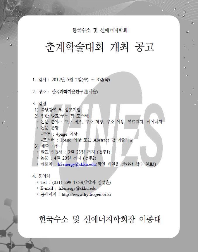 [수소학회] 2012년 춘계학술대회 개최 공고