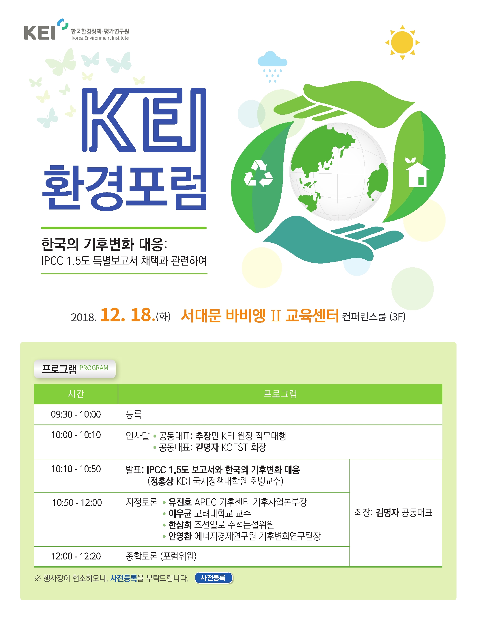 '한국의 기후변화 대응: IPCC 1.5도 특별보고서 채택과 관련하여'를 주제로 진행되는 이번 행사에 환경(기후) 관련 업무 담당자분들의 관심부탁드립니다.