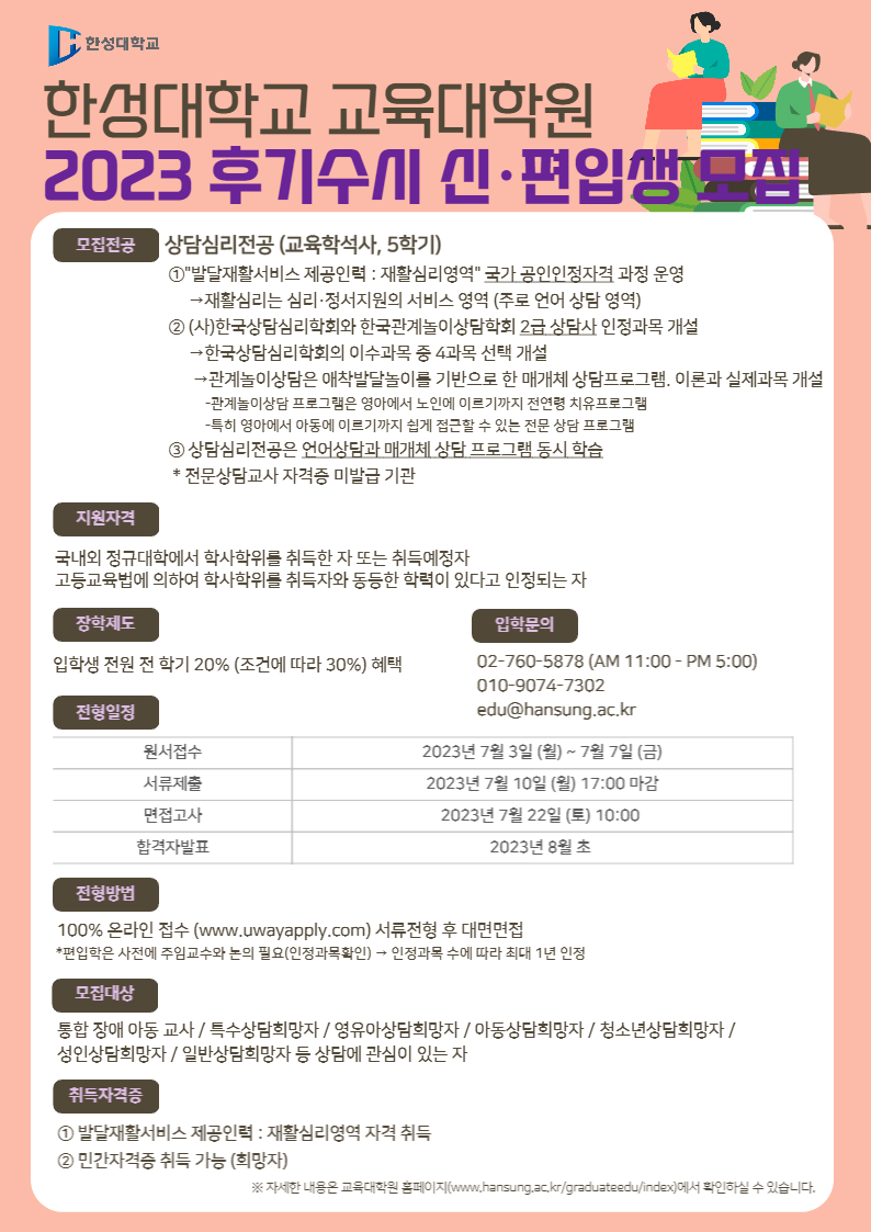 자세한 사항은 한성대학교 교육대학원 홈페이지 참고