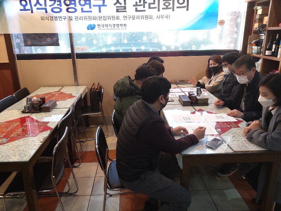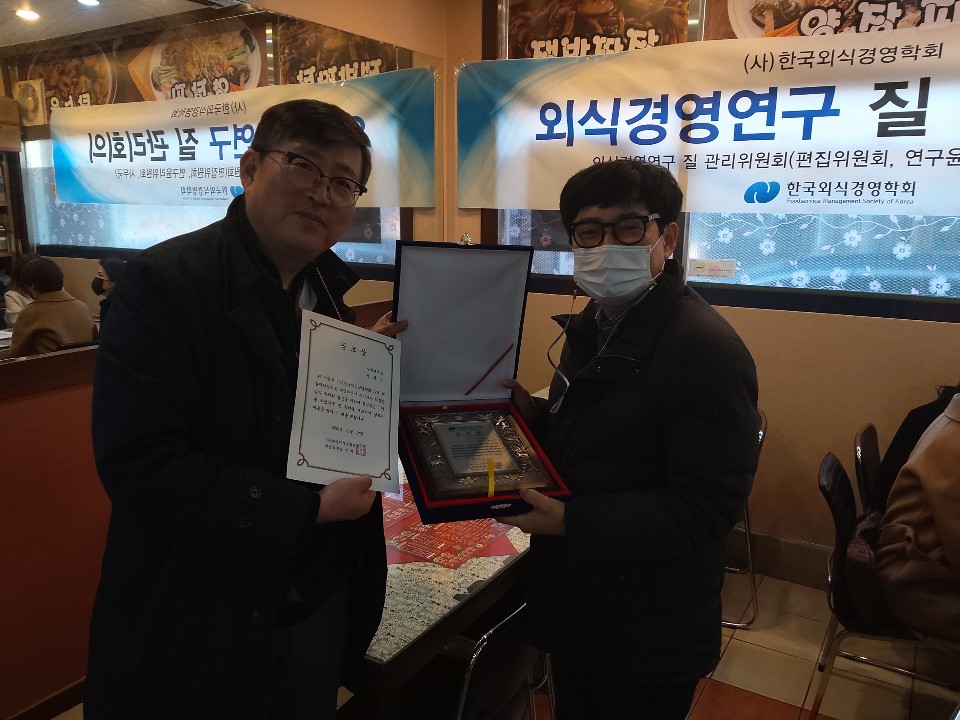 외식경영연구 질관리 위원회 주관 2020편집부 연말보고 및 전임 편집위원장 공로패 전달