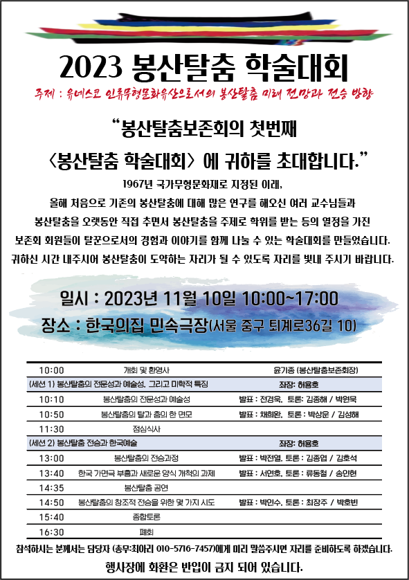 [학술대회안내] 2023 봉산탈춤 학술대회