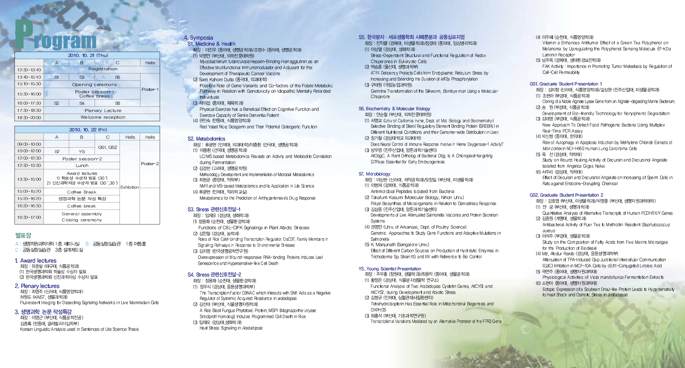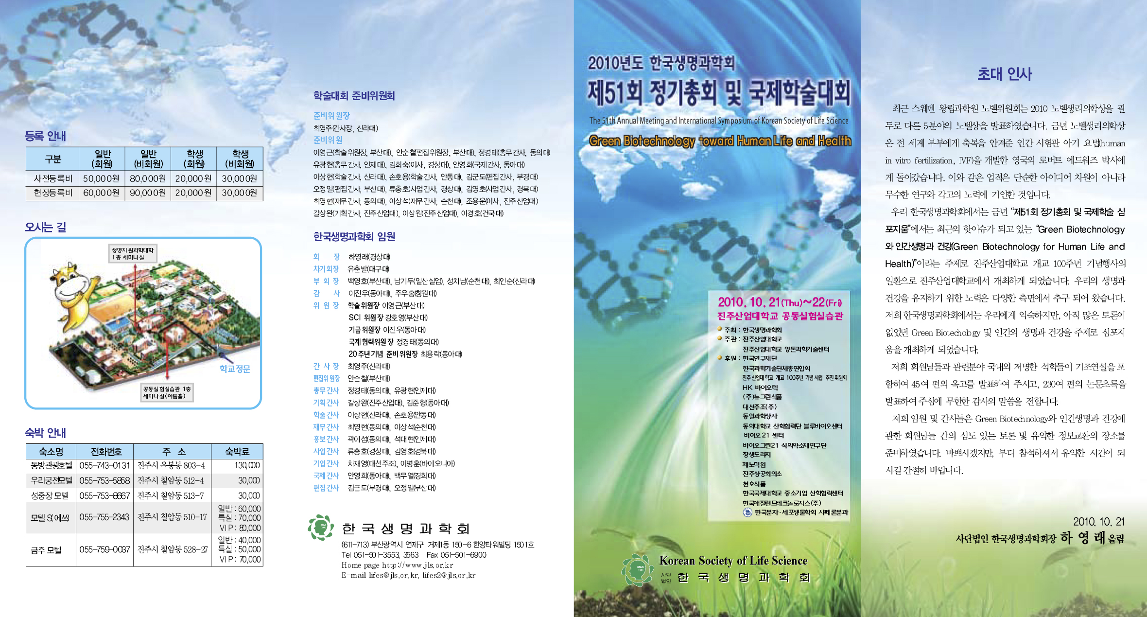 초청장 내에는 program 및 숙박시설, 오시는 길이 안내되어 있으니