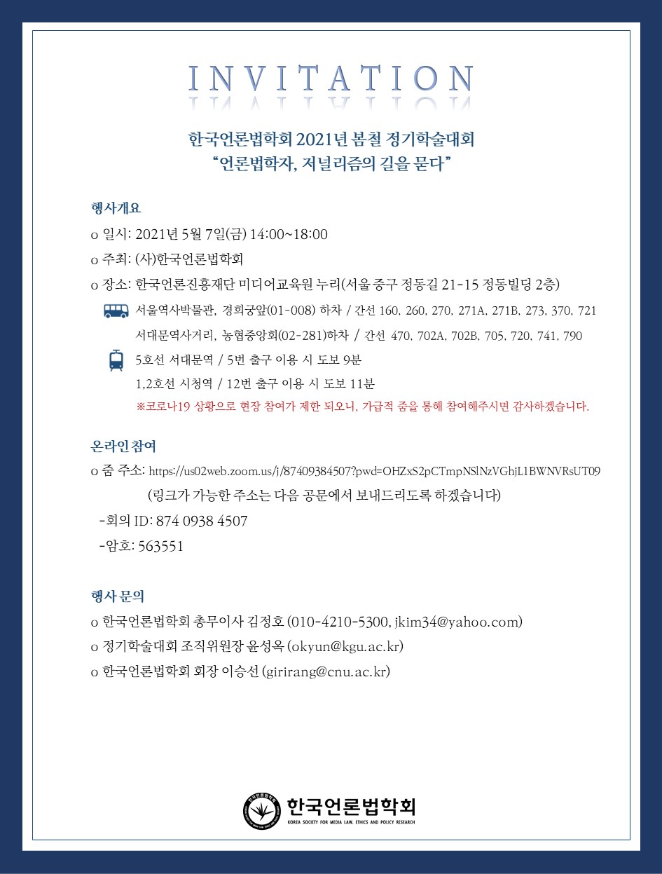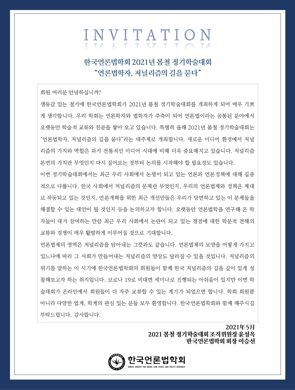 [공지] 한국언론법학회 2021 봄철 정기학술대회 초청장