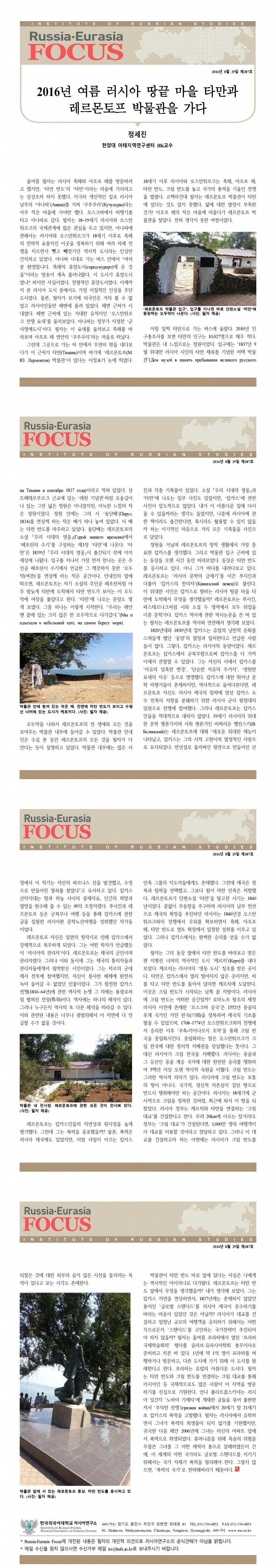 제387호 2016년 여름 러시아 땅끝 마을 타만과 레르몬토프 박물관을 가다