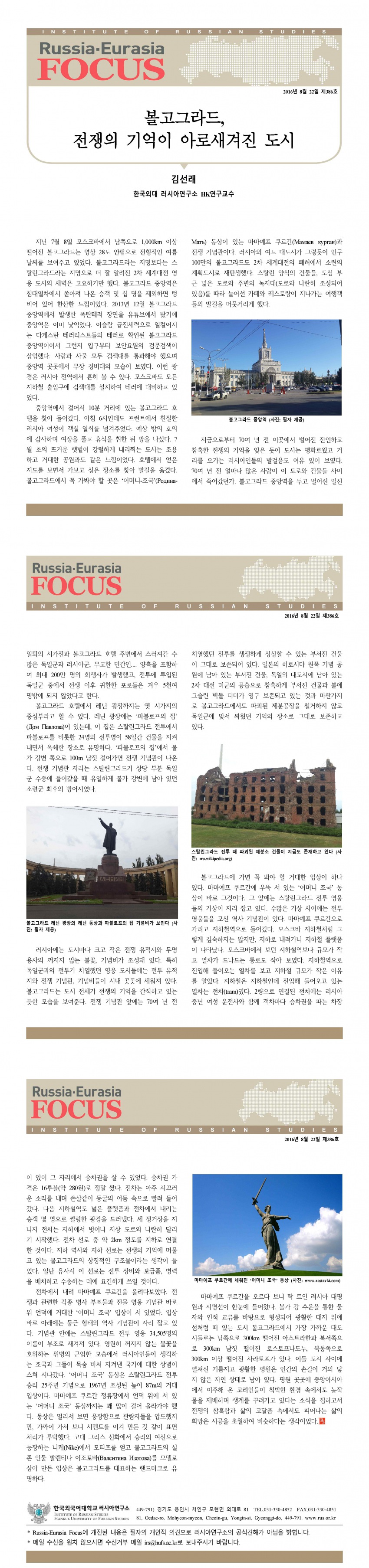 제386호 볼고그라드, 전쟁의 기억이 아로새겨진 도시