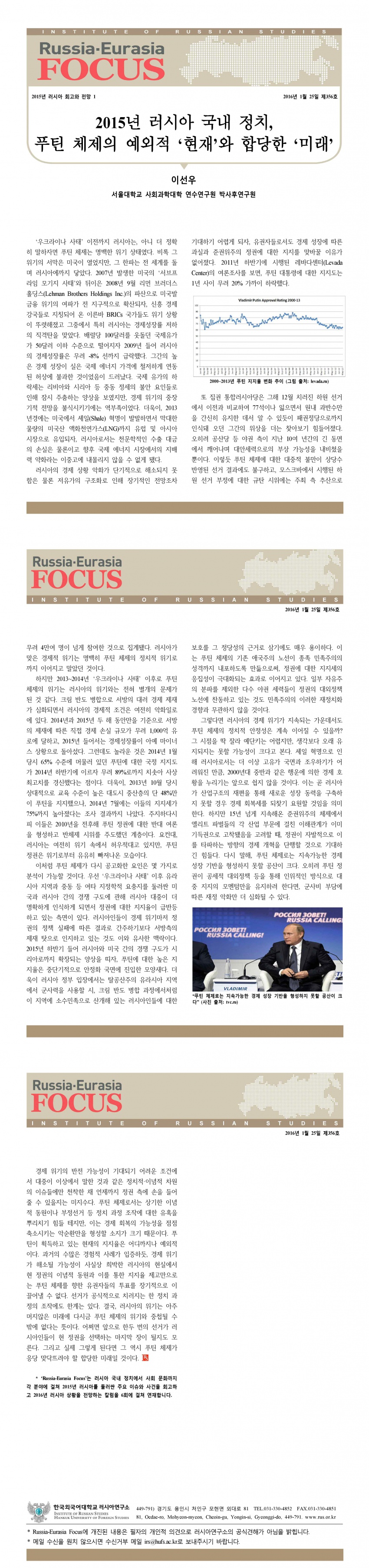 제356호 2015년 러시아 국내 정치, 푸틴 체제의 예외적 ‘현재’와 합당한 ‘미래’