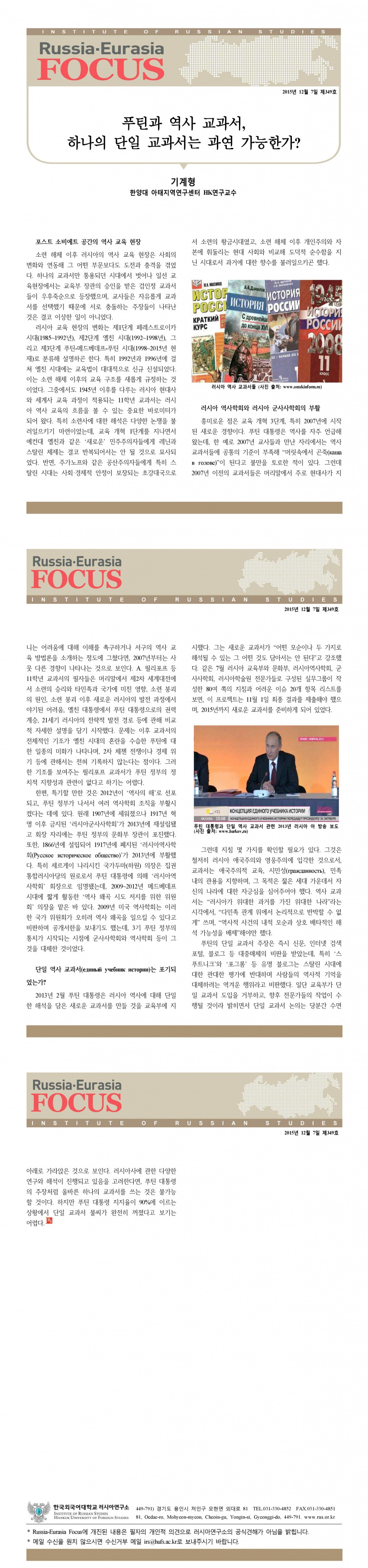 제349호 푸틴과 역사 교과서, 하나의 단일 교과서는 과연 가능한가?