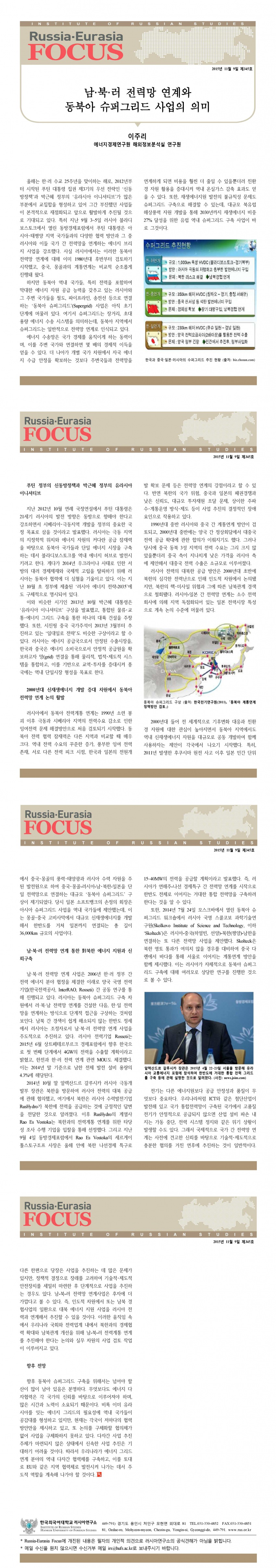 제345호 남·북·러 전력망 연계와 동북아 슈퍼그리드 사업의 의미