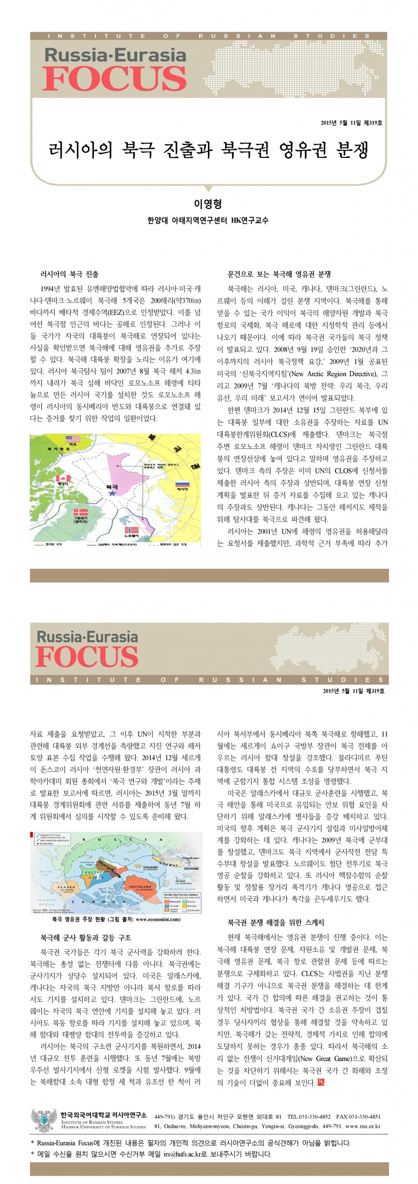 제319호 러시아의 북극 진출과 북극권 영유권 분쟁
