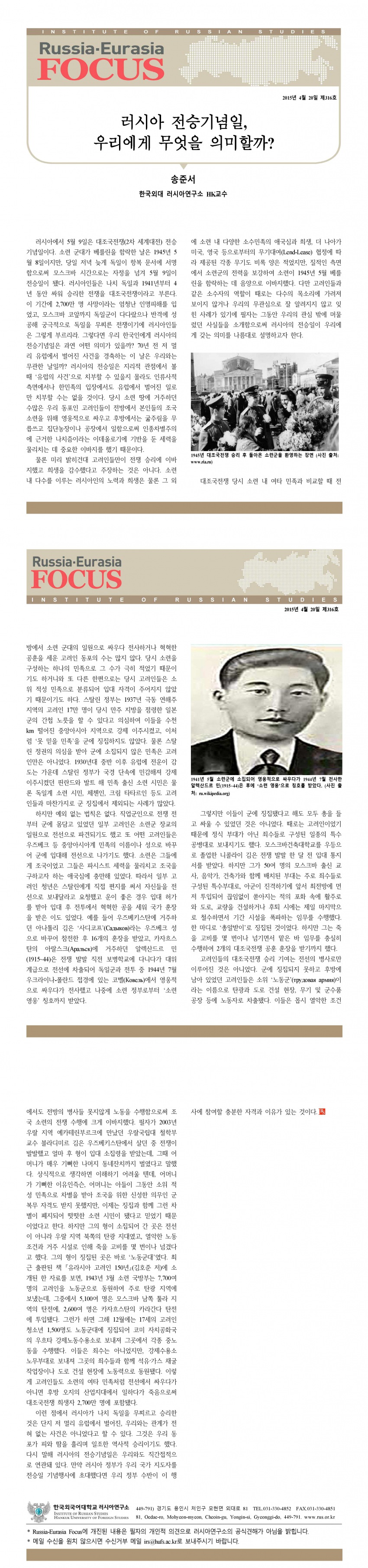 제316호 러시아 전승기념일, 우리에게 무엇을 의미할까?