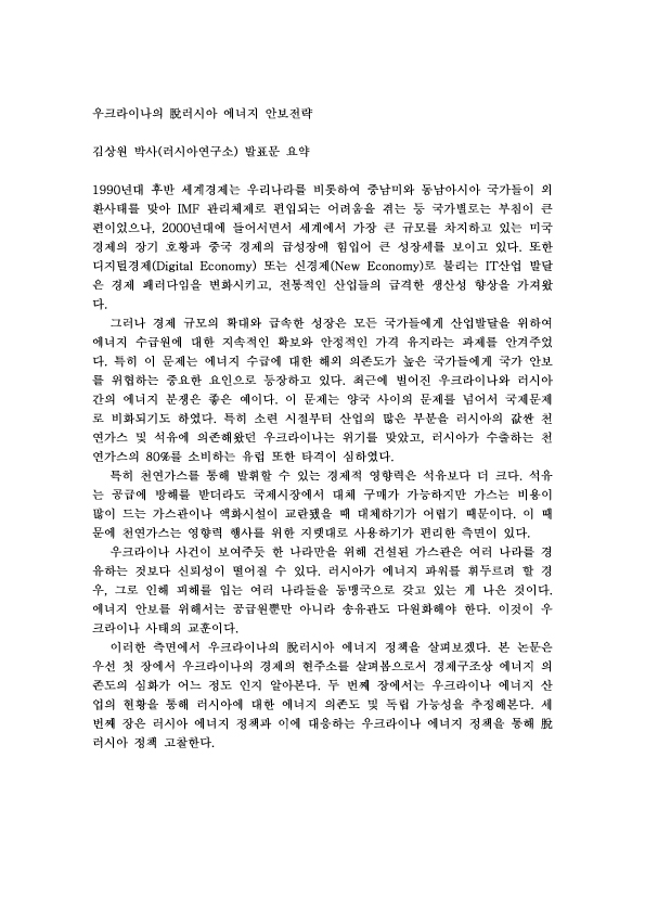 제64차 우크라이나의 脫러시아 에너지 안보전략 외 1