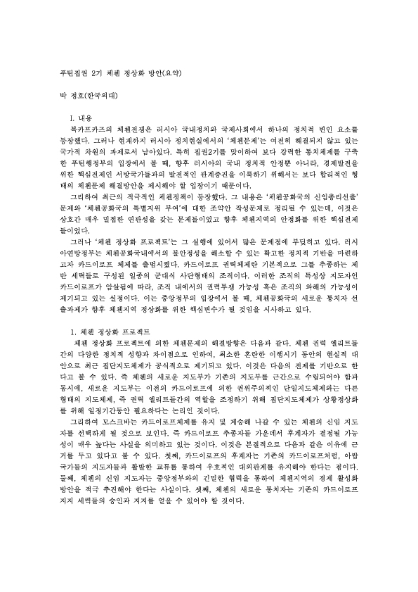 제51차 푸틴집권 2기 체첸 정상화 방안 외 1