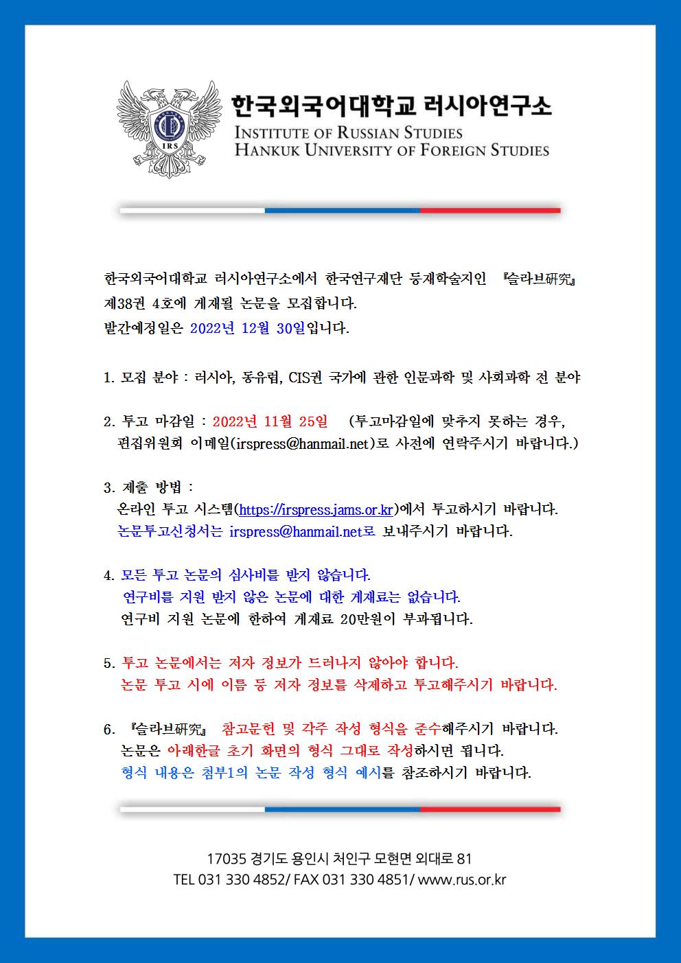 슬라브연구 제38권 4호 논문 투고 안내