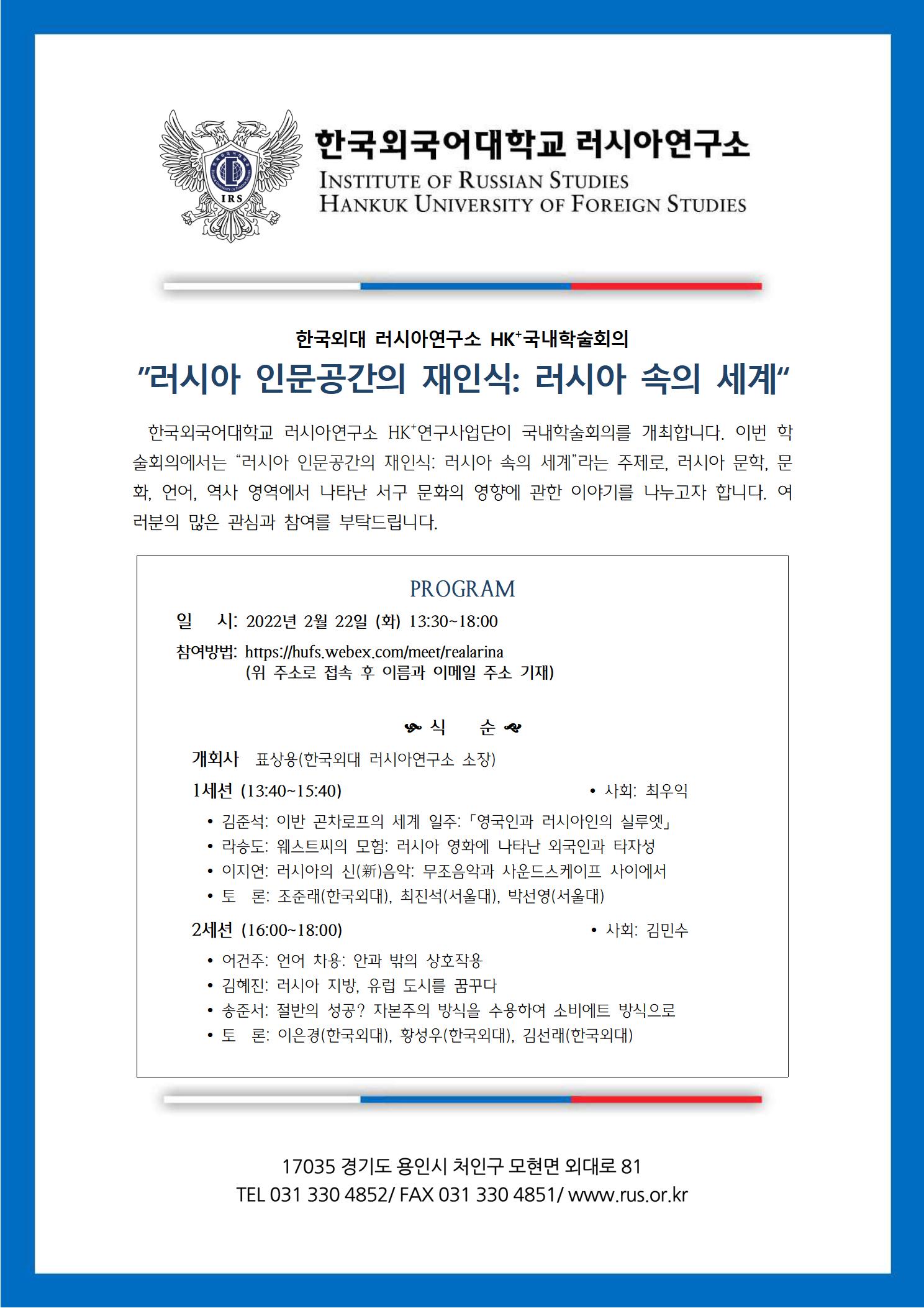 한국외대 러시아연구소 HK+ 국내학술회의 안내