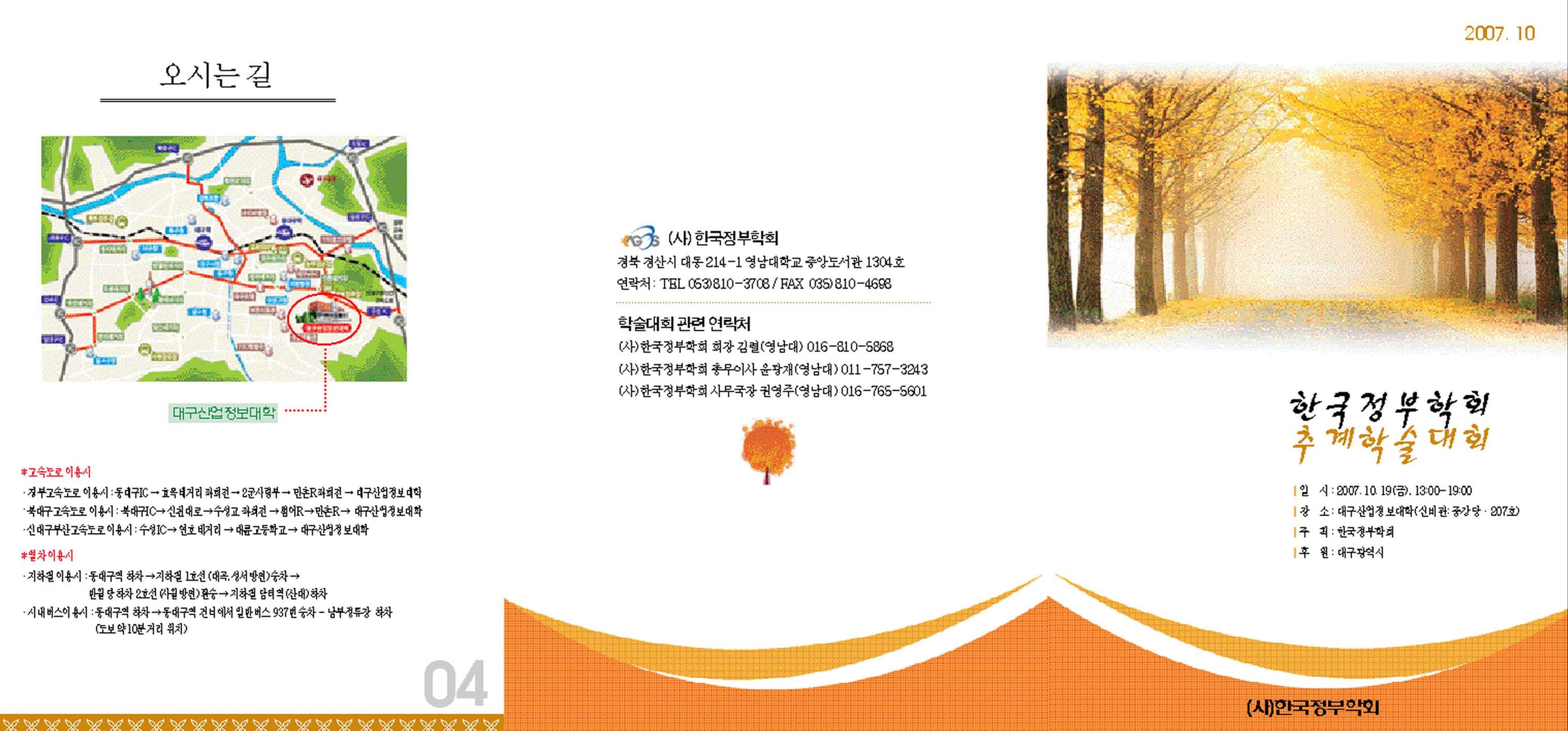 한국정부학회 추계학술대회가 대구산업정보대학(신비관: 중강당, 207호)에서