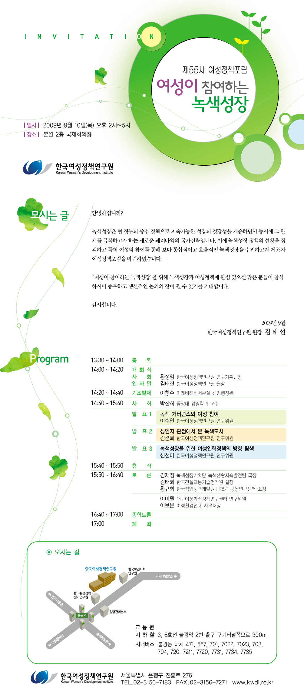 [한국여성정책연구원]"여성이 참여하는 녹색성장"_제55차 여성정책포럼 개최 (2009-09-07)