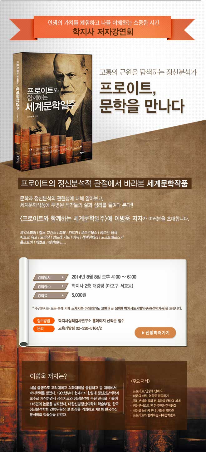 [학지사 저자강연회] ''프로이트, 문학을 만나다'' 안내 (2014-07-25)