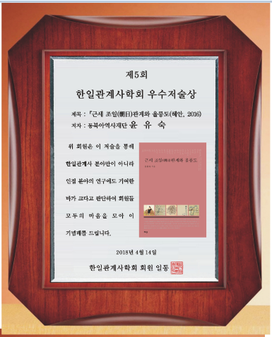 제5회 한일관계사학회 학술상 저술 상패