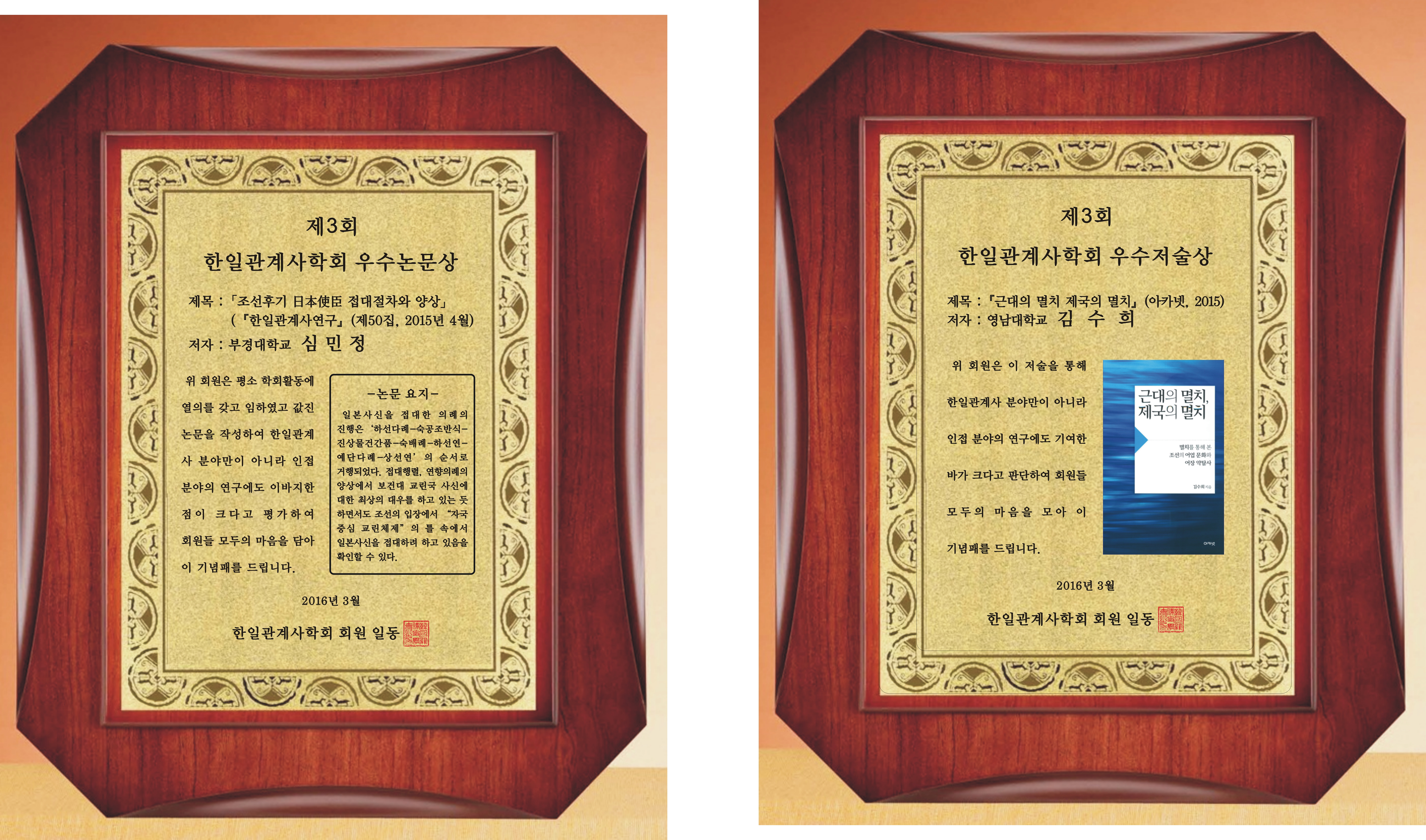 지난달 3월에 열린 발표회에서 제3회 학회 제정, 우수 저술/논문 시상식이 열렸습니다.