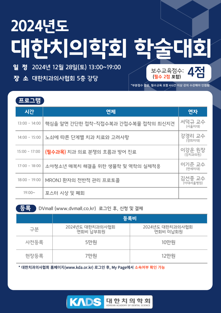 [학술대회] 2024년 대한치의학회 학술대회 개최 (2024.12.28.토)