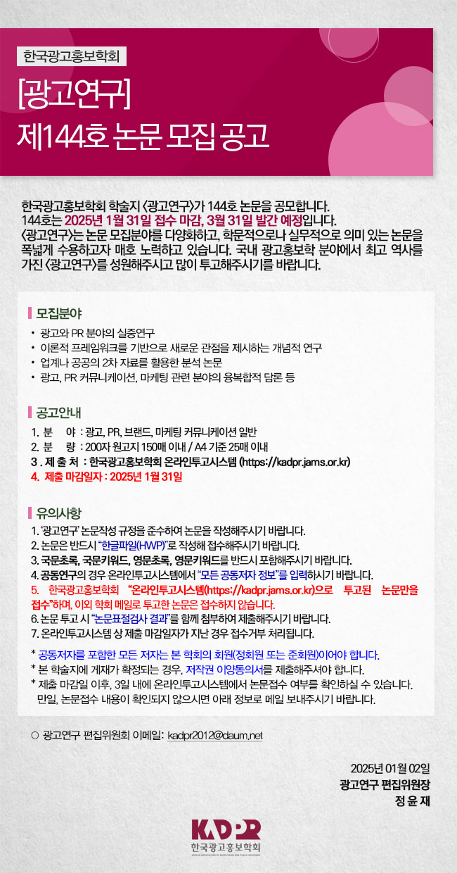 [KADPR] 광고연구 제144호 논문 모집 공고