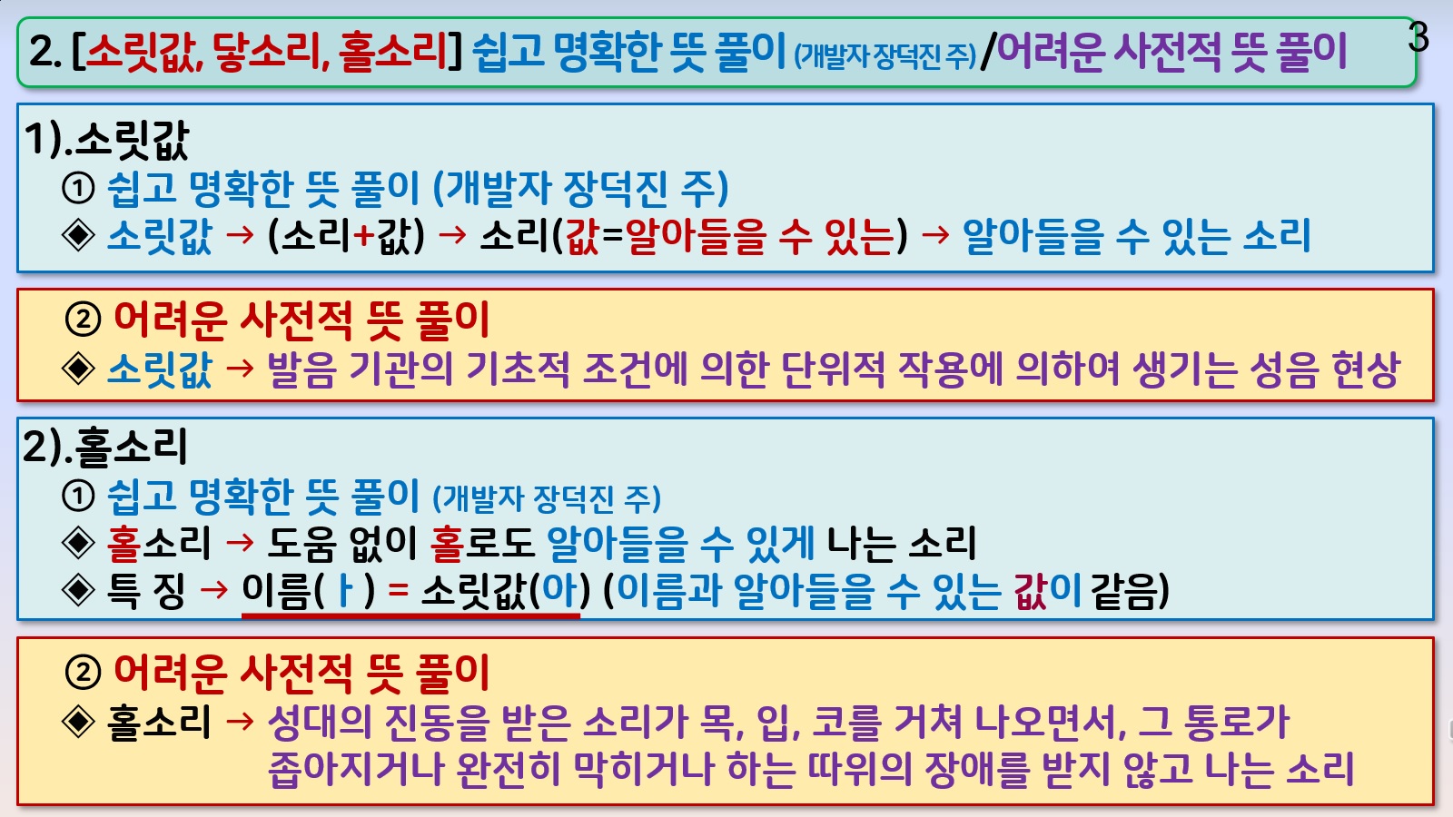 유치원 아이도 쉽게 이해할 수 있는 소릿값, 닿소리, 홀소리의 명확한 개념 정의
