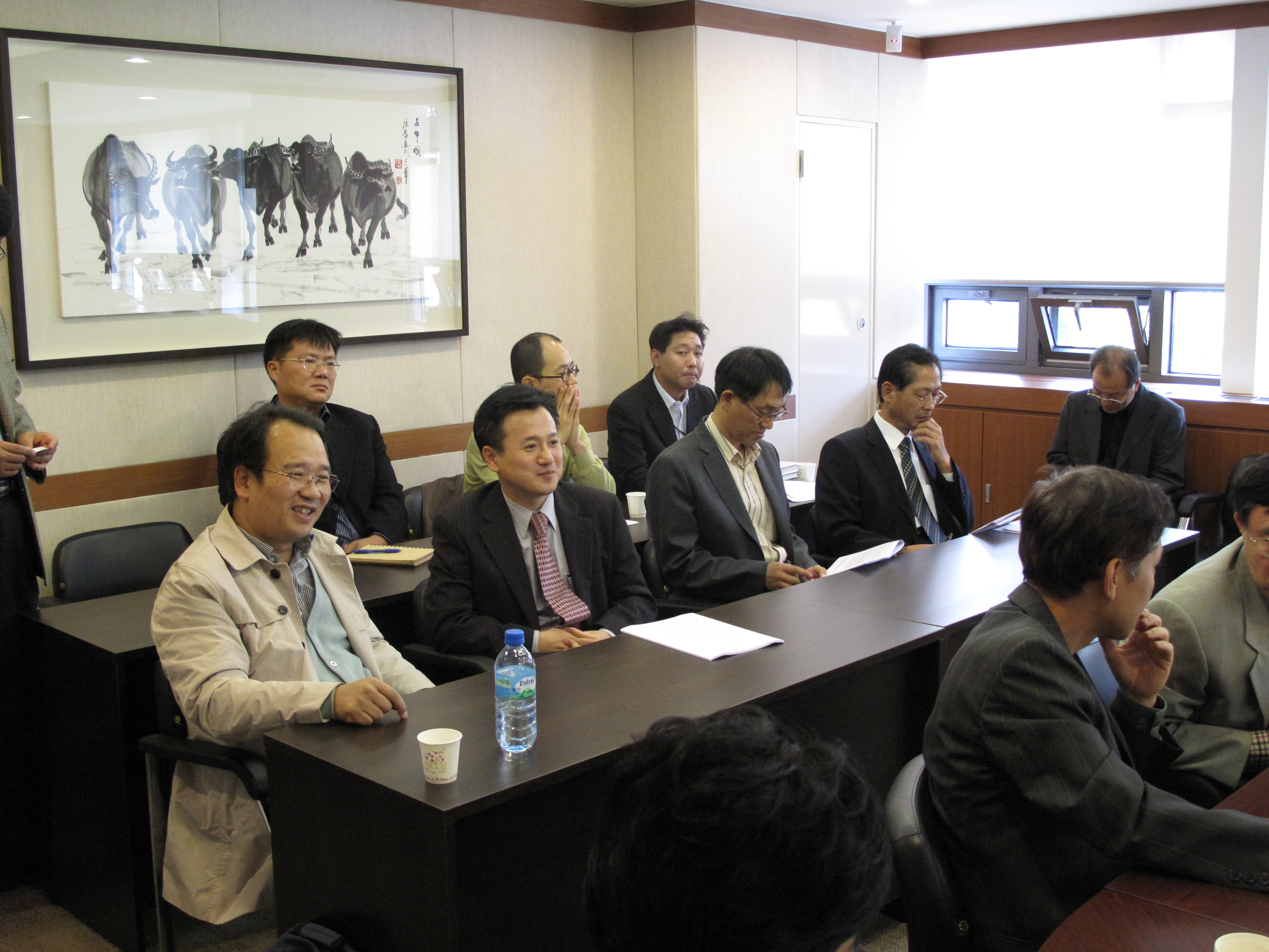 발표 도중 활짝 웃고 있는 김병곤, 곽준혁 쌤. 김병곤 쌤, 독감 다 나으셨나요? 곽준혁 쌤, 번거로운 발표회 준비를 맡아 주셔서 감사합니다.