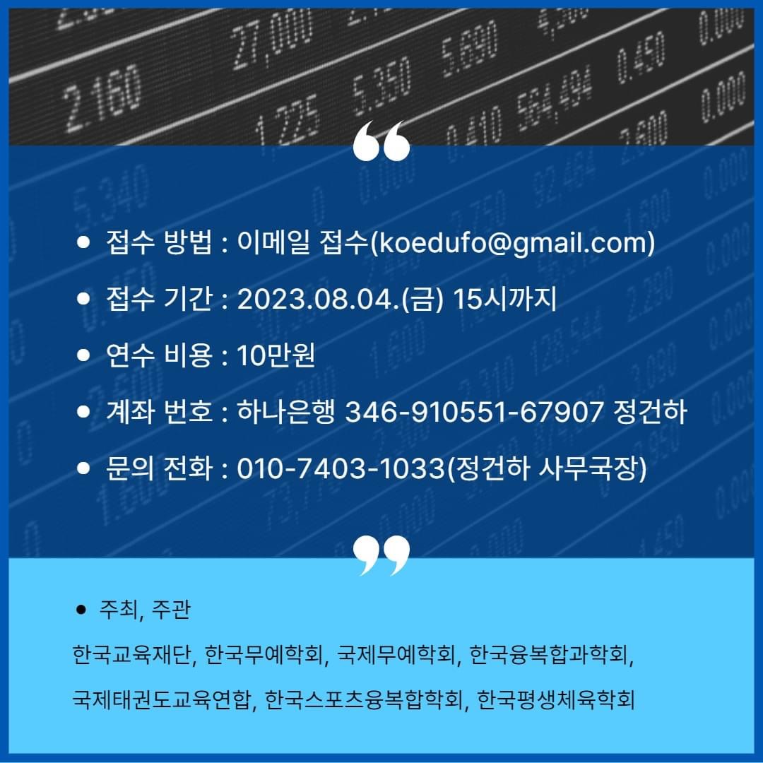 한국교육재단, 경희대 KSCI에서 주관하고 국제무예학회, 한국무예학회, 한국융복합과학회, 국제태권도교육연합회, 한국스포츠융복합학회, 한국평생체육학회에서