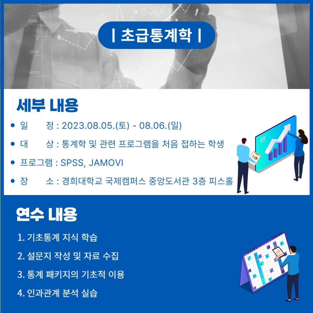 ▶  2023년 08월 19일-20일 10시-17시: SPSS, AMOS, JAMOVI 활용 및 실습