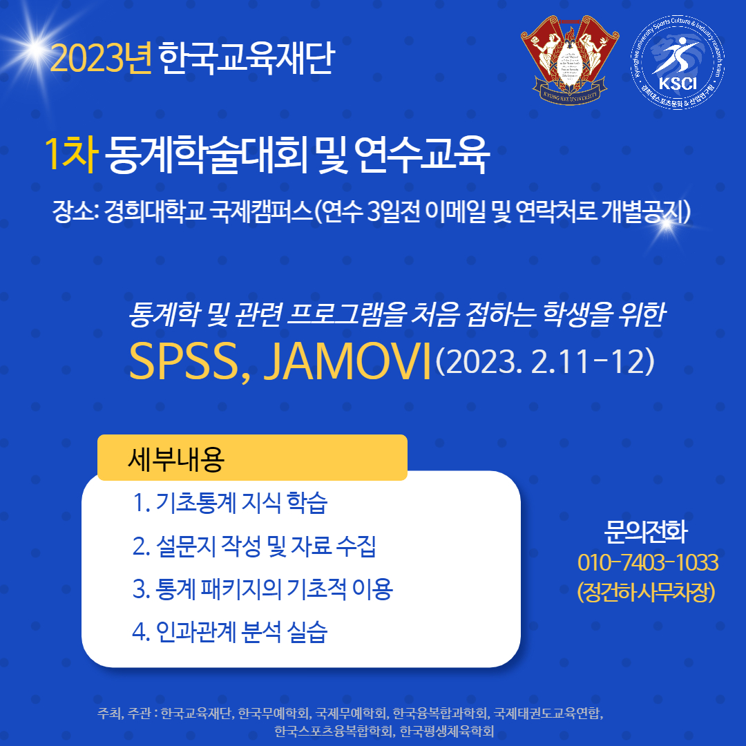 한국교육재단, 경희대 KSCI에서 주관하고 한국무예학회, 국제무예학회, 한국융복합과학회, 국제태권도교육연합,