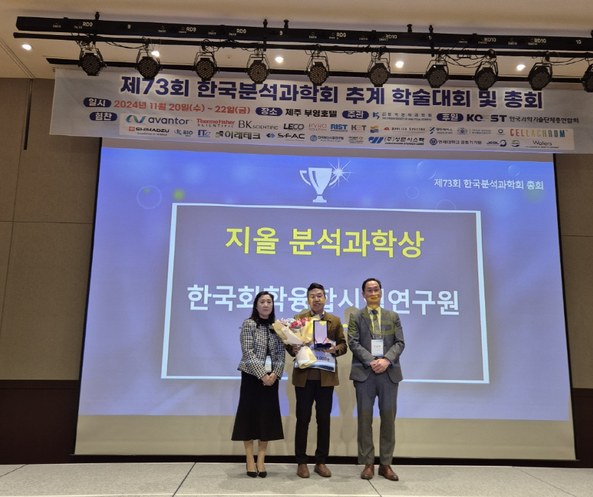 "한국화학융합시험연구원 이재형 박사님 지올 분석과학상 수상"